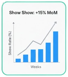 Follow-ups and reminders lifted our show rate to over 80%. The system practically runs itself.
